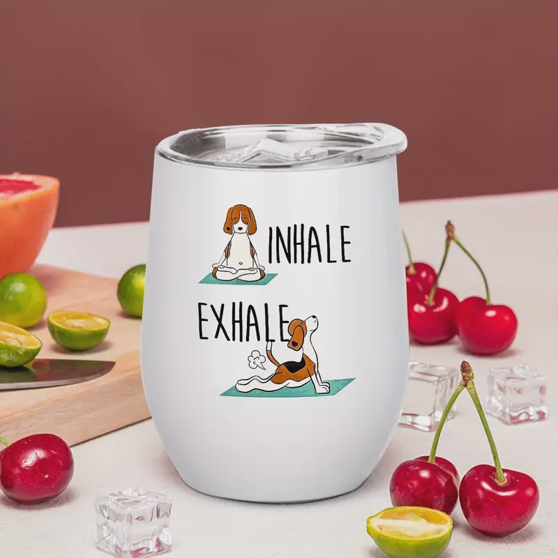 This is the 12oz Yoga Dachshund Stainless Steel Wine Tumbler. Whew! Say that 5 times fast. Will this totally cool Shakra aligned wine mug help you find inner peace? Not sure. Get a few, invite friends, add wine and let us know!
