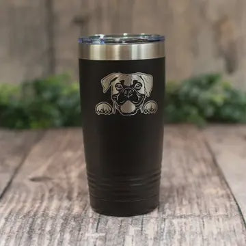 Engraved Boxer Dog Travel Tumbler - With Handle