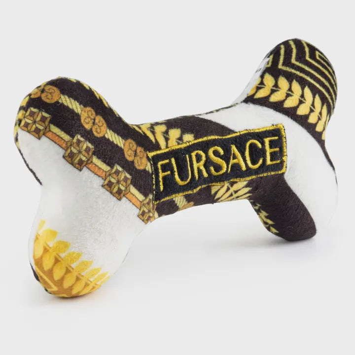 Fursace Bone Make your dolce-vita doggie drool when you throw them this fabulous Fursace Bone toy! No manicured mutt can resist the luxurious plush exterior that provides the perfect chewing surface, nor the sumptuous squeaker that rewards each chomp! Pair that with striking styling complete with stunning golden accents, and they’ll get the bone that’s the ultimate in furry fashion!