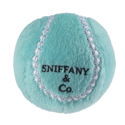 Sniffany & Co. Tennis Ball - Every Fashionista Loves Sniffany & Co. It's true. We asked all of them. This cute tennis ball has a high bounce and a tough chew. The outside has the icon colors that Sniffany aficionados have come to love so much. It is details with soft "pearls" that will make your dog the envy of all mutts who wish. Get a few for your little angel. They might get hidden for safe keeping.